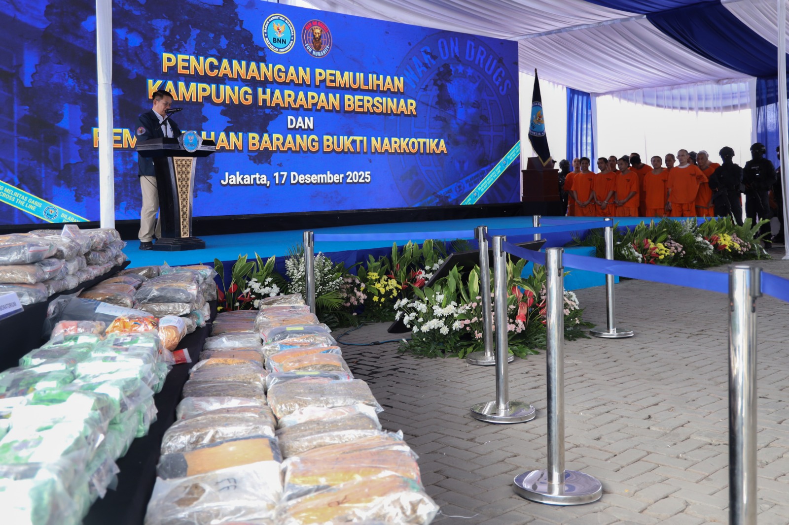 Jakarta – Badan Narkotika Nasional (BNN) memusnahkan barang bukti narkotika hasil pengungkapan kasus sepanjang periode Oktober–Desember di sejumlah wilayah Indonesia, meliputi Aceh, Sumatera Utara, Sumatera Selatan, Banten, DKI Jakarta, Kalimantan Barat, dan Nusa Tenggara Barat. Pemusnahan tersebut dilaksanakan pada Rabu (17/12), di dua lokasi, yakni Buffer Area IPC Cabang Tanjung Priok, Jakarta Utara, serta PT Jasa Medivest Plant, Dawuan, Karawang, Jawa Barat.